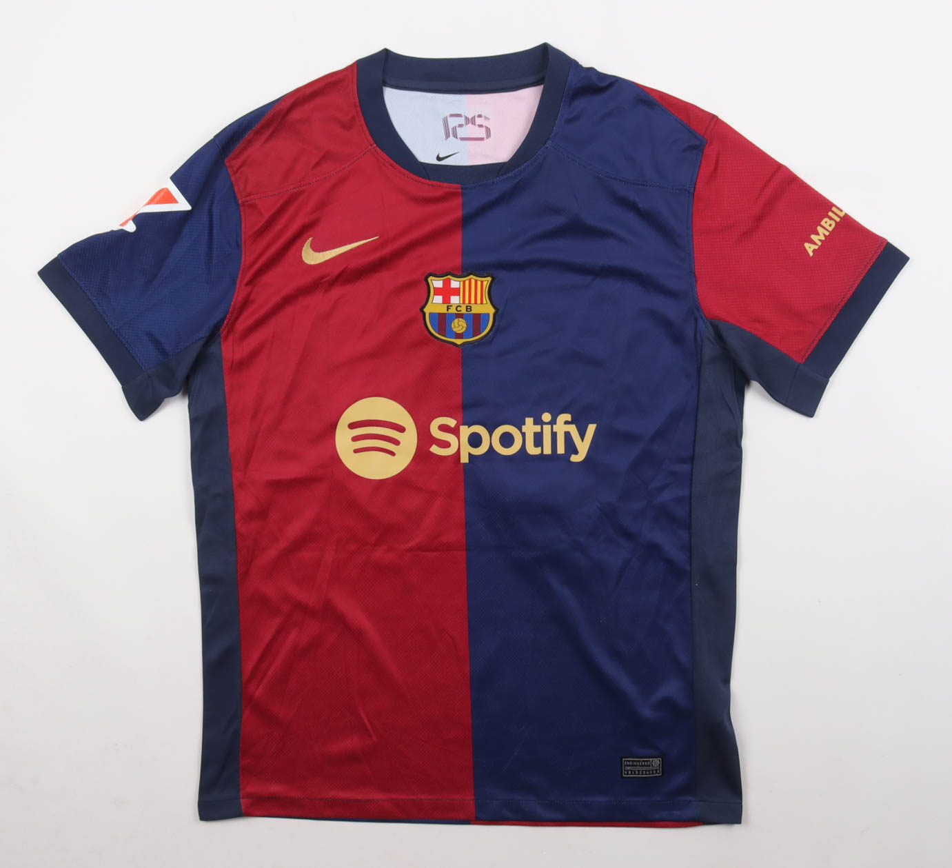 Nike jersey. Everything pressed/sewn on, size L. Hand-signed by Lamine Yamal.
