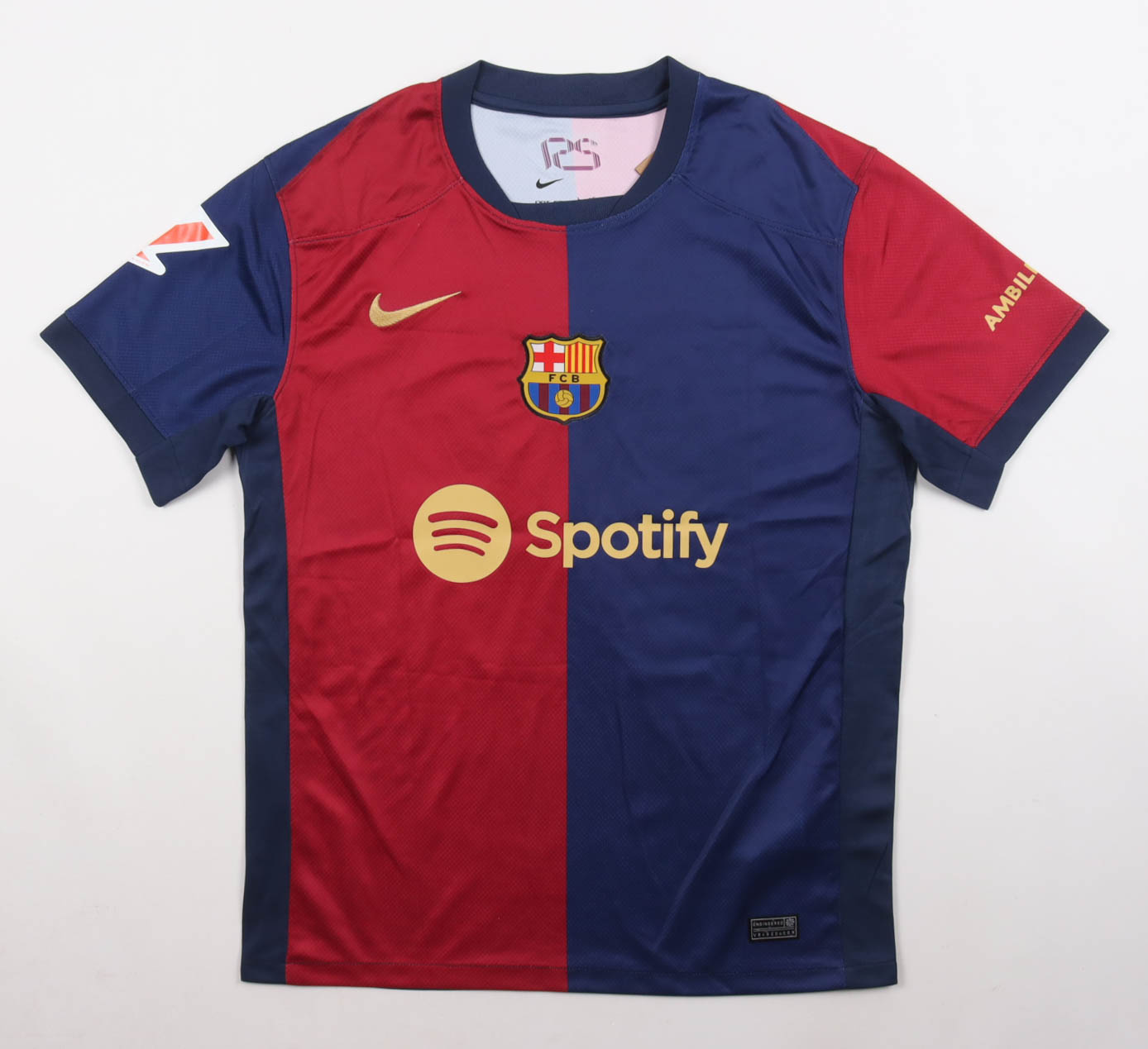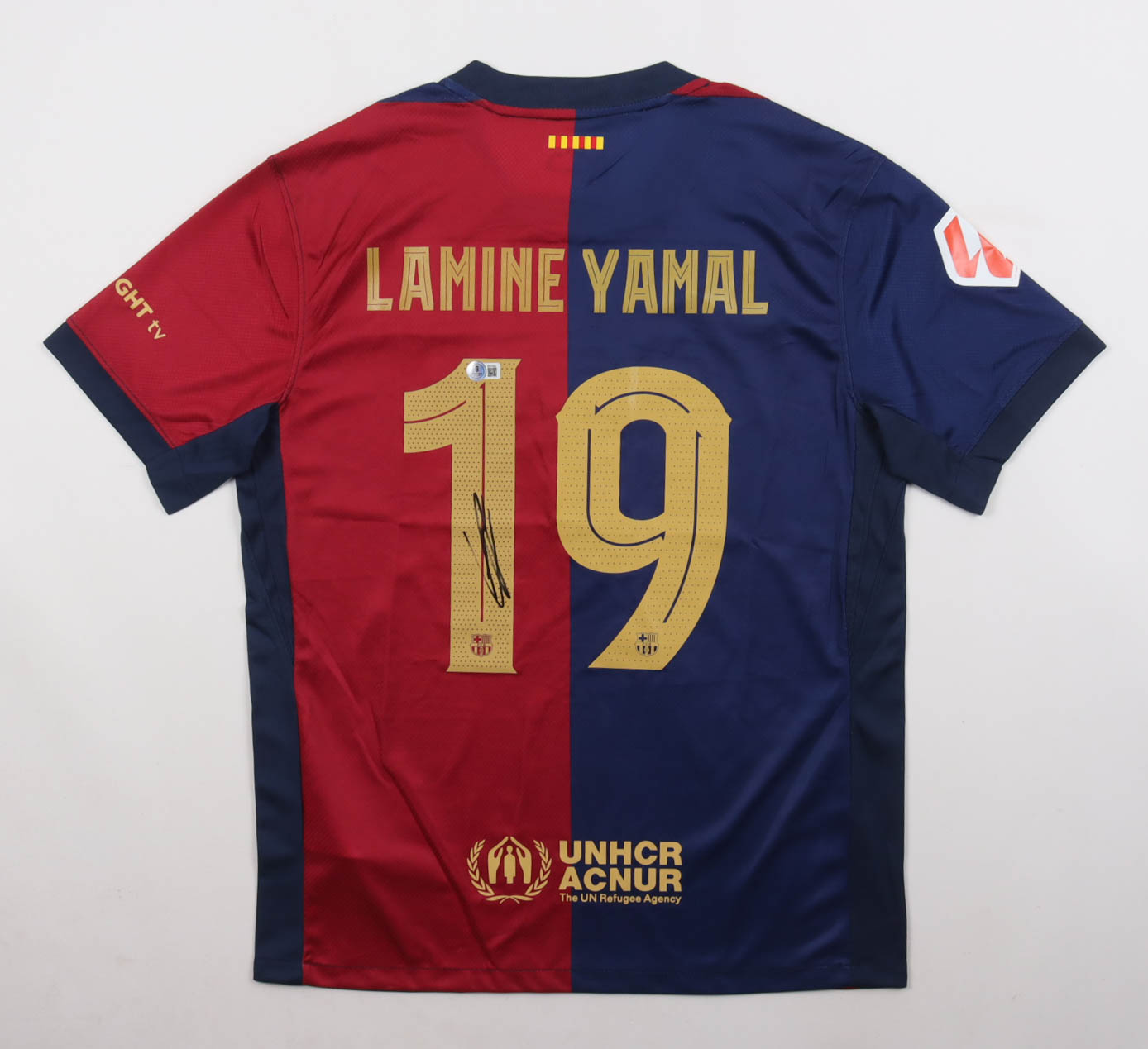 Nike jersey. Everything pressed/sewn on, size L. Hand-signed by Lamine Yamal.