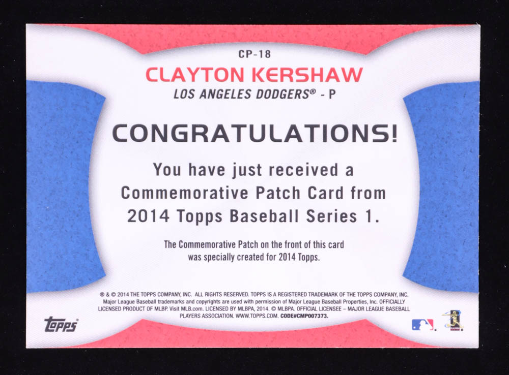 Clayton Kershaw 2014 Topps Manufactured Commemorative Team Logo Patch #CP18