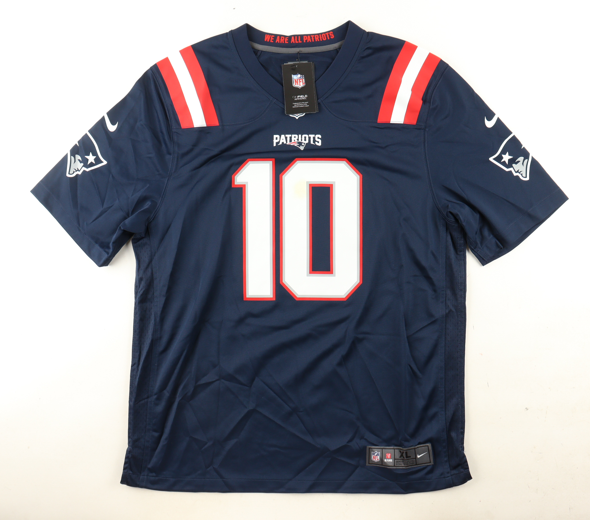 Nike authentic jersey with everything pressed on, size XL. Hand-signed by Mac Jones (New England Patriots). Please note, the signature is smudged and the front numbers are stained.