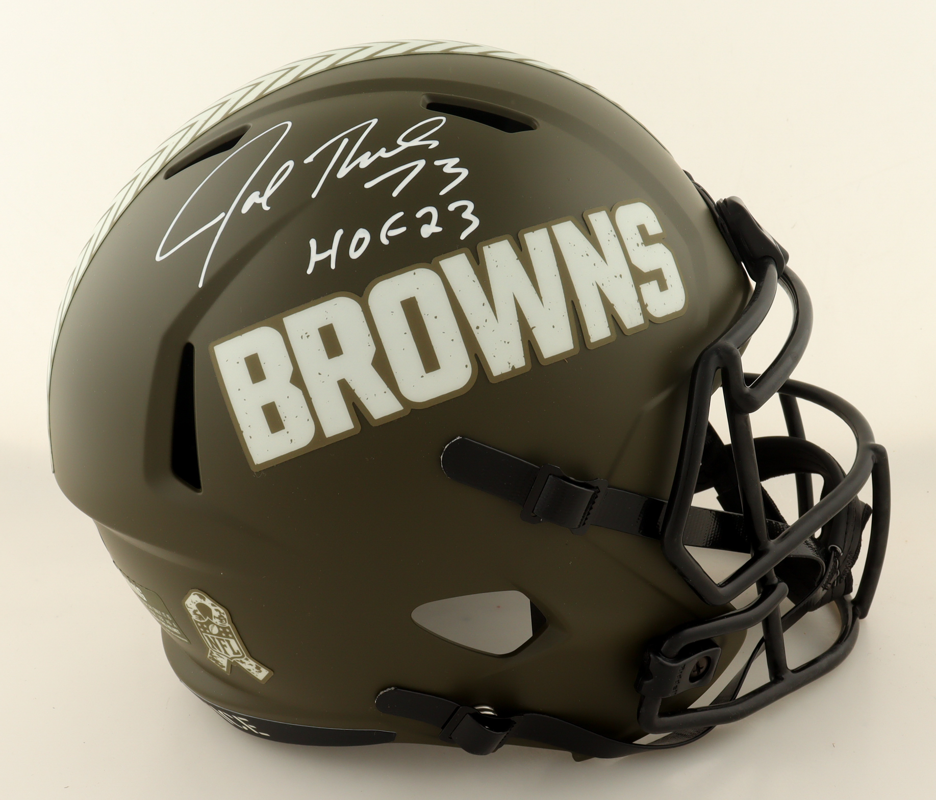 Joe Thomas Signed Browns Full-Size Salute to Service Alternate Speed Helmet Inscribed "HOF 23" (Beckett)