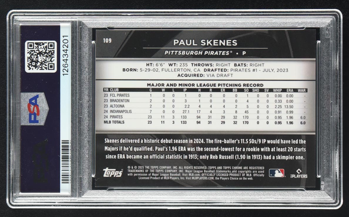 Paul Skenes 2025 Topps Chrome Black Gold Mini Diamond #109 #30/50 (PSA 9)