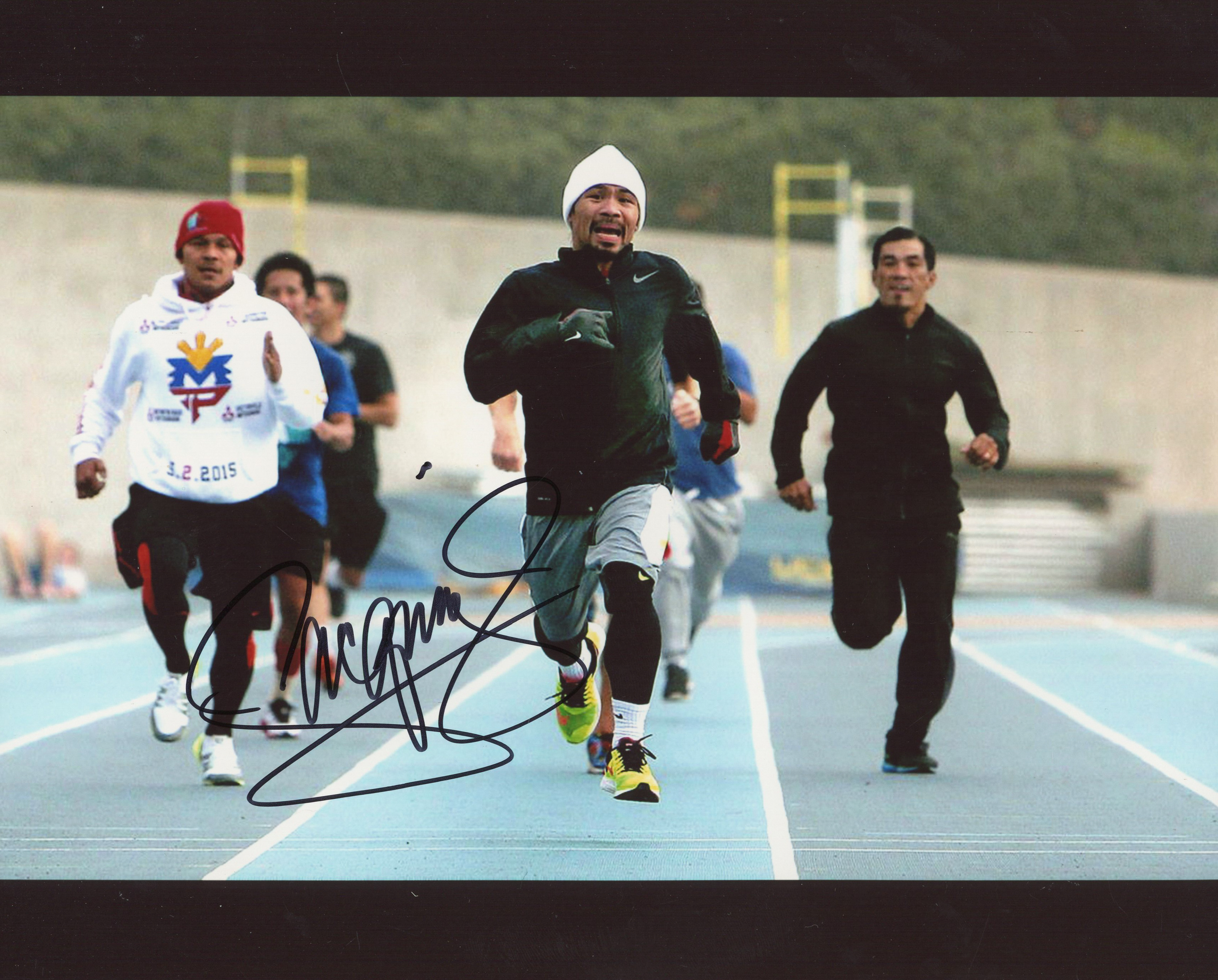 Photo measures 8" x 10" in size and is hand-signed in black felt-tip pen by Manny Pacquiao.