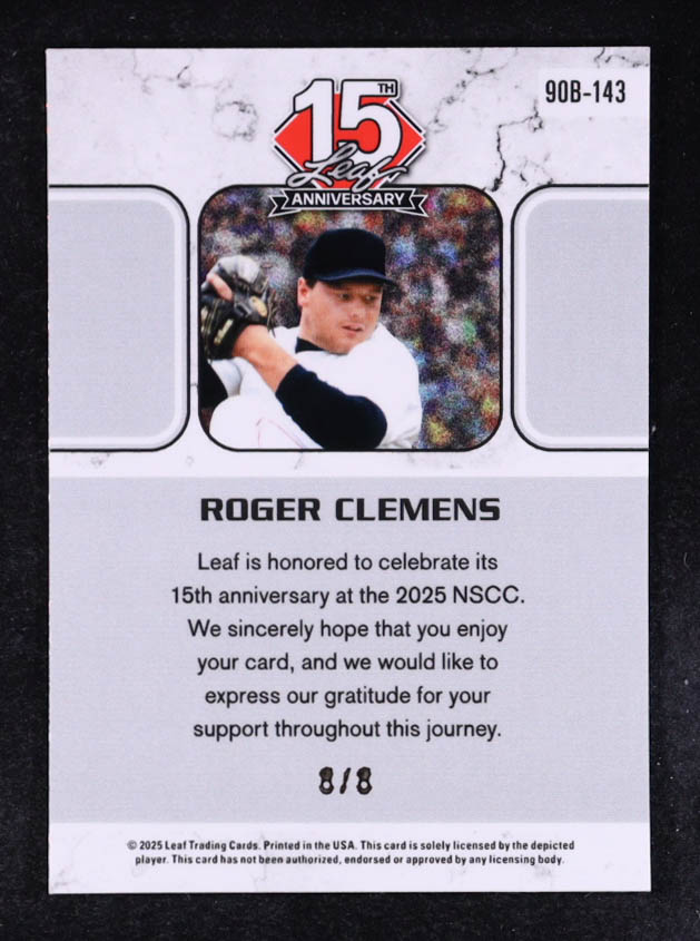Roger Clemens 2025 Leaf 15th National NSCC Anniversary '90 Pink Sparkle #90B143 #8/8