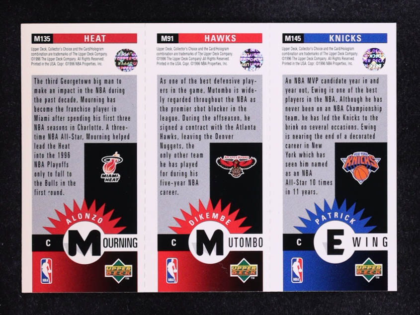 Patrick Ewing / Dikembe Mutombo / Alonzo Mourning 1996-97 Collector's Choice Mini-Cards #M135-91-145