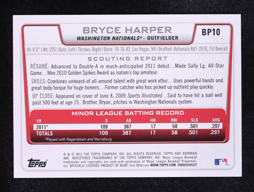 Bryce Harper 2012 Bowman Prospects #BP10 RC
