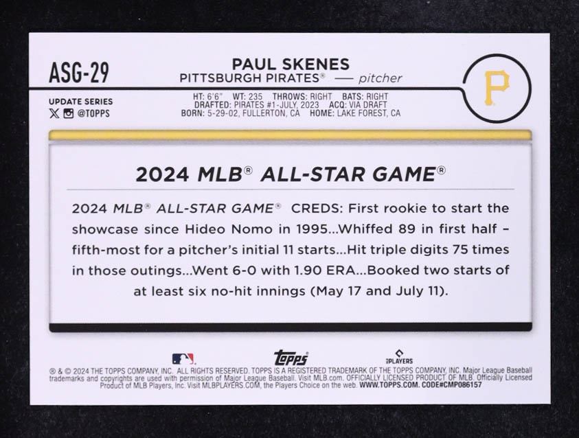 Paul Skenes 2024 Topps Update '24 All-Star Game #ASGC29 RC