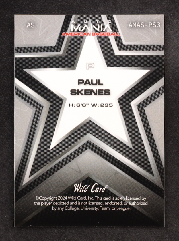 Paul Skenes 2024 Wild Card Auto Mania Vintage Flag Kaliedoscope #AMASPS3 RC #34/35