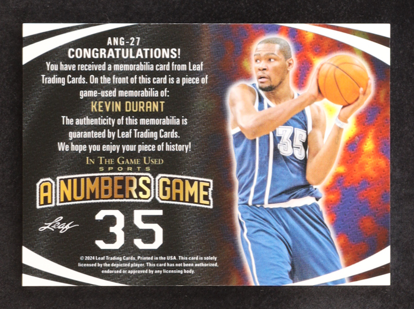 Kevin Durant 2024 Leaf ITG Used Sports A Numbers Game Crystal Rainbow #ANG27 #44/50
