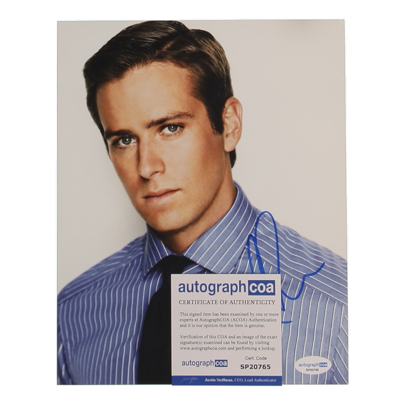 Photo measures 8" x 10" in size and has been hand-signed by Armie Hammer.