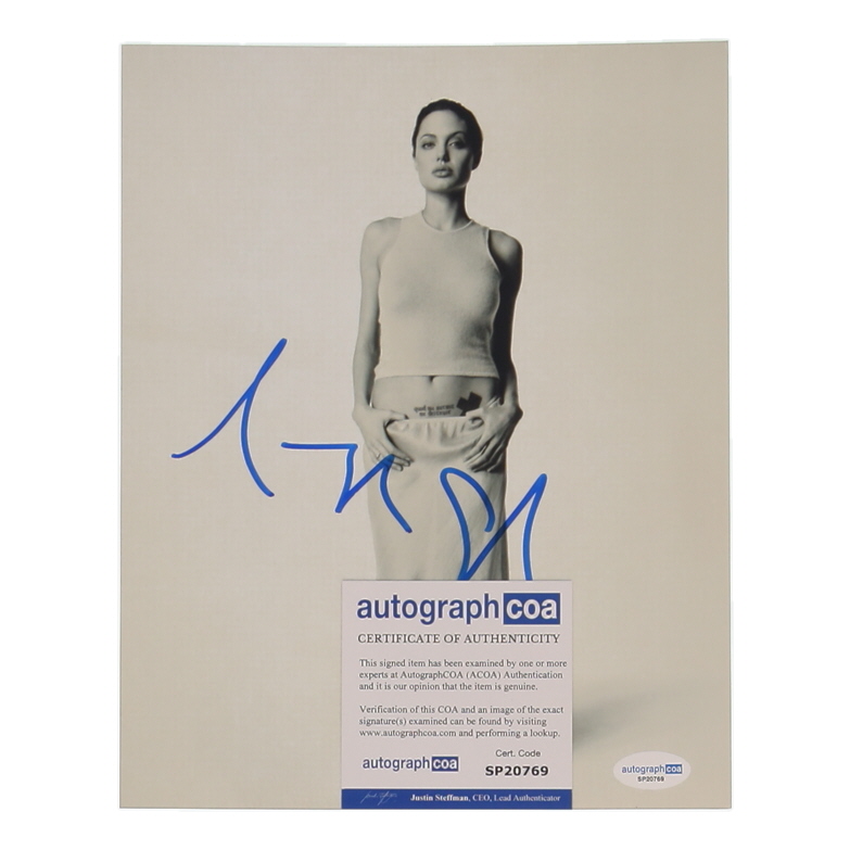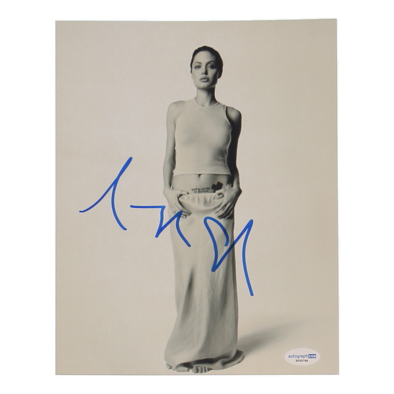 Photo measures 8" x 10" in size and has been hand-signed by Angelina Jolie.