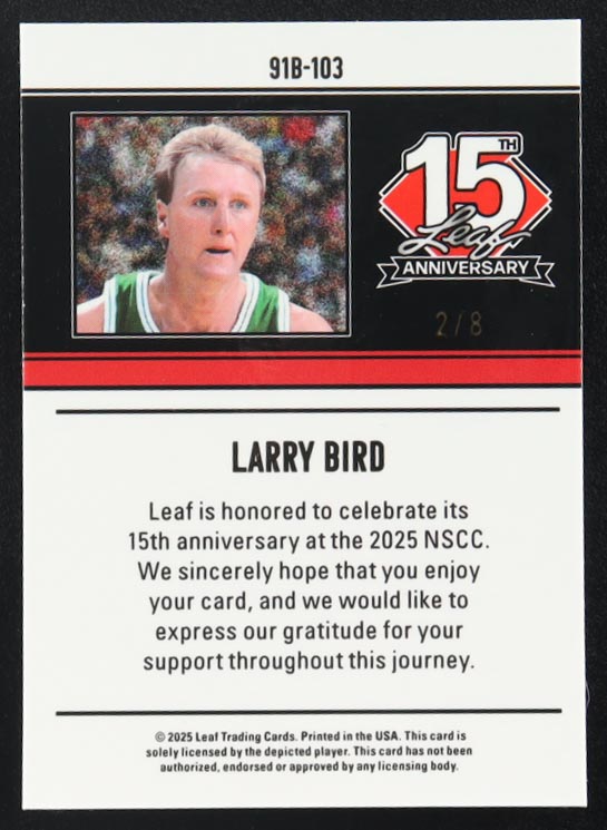 Larry Bird 2025 Leaf 15th Anniversary '91 Leaf Pink Lava #91B103 #2/8