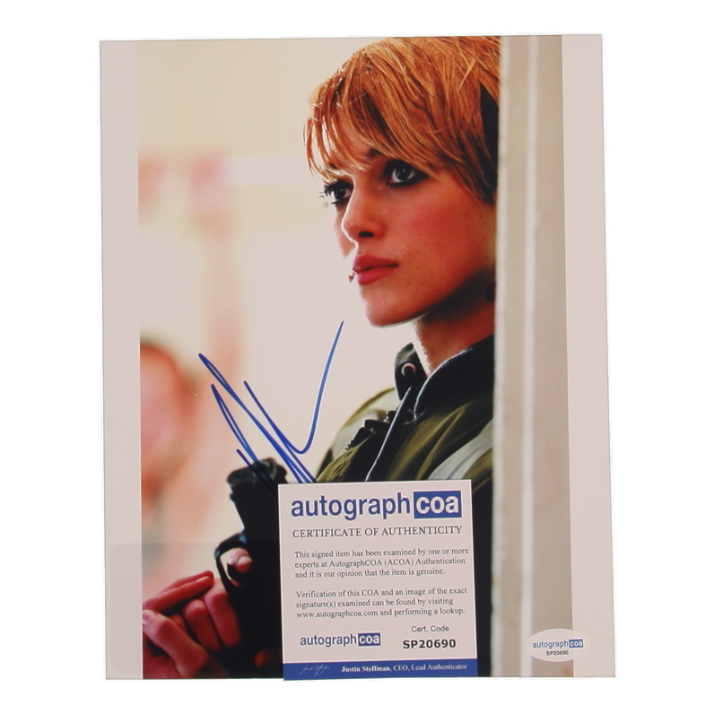 Photo measures 8" x 10" in size and has been hand-signed by Keira Knightley.