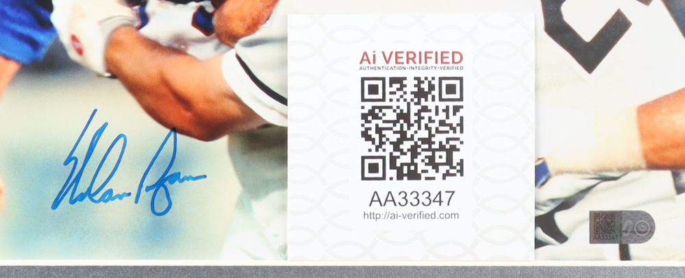 Custom matted display measures 13" x 14" in size and features a photo that has been hand-signed by Nolan Ryan (Houston Astros, HOF).