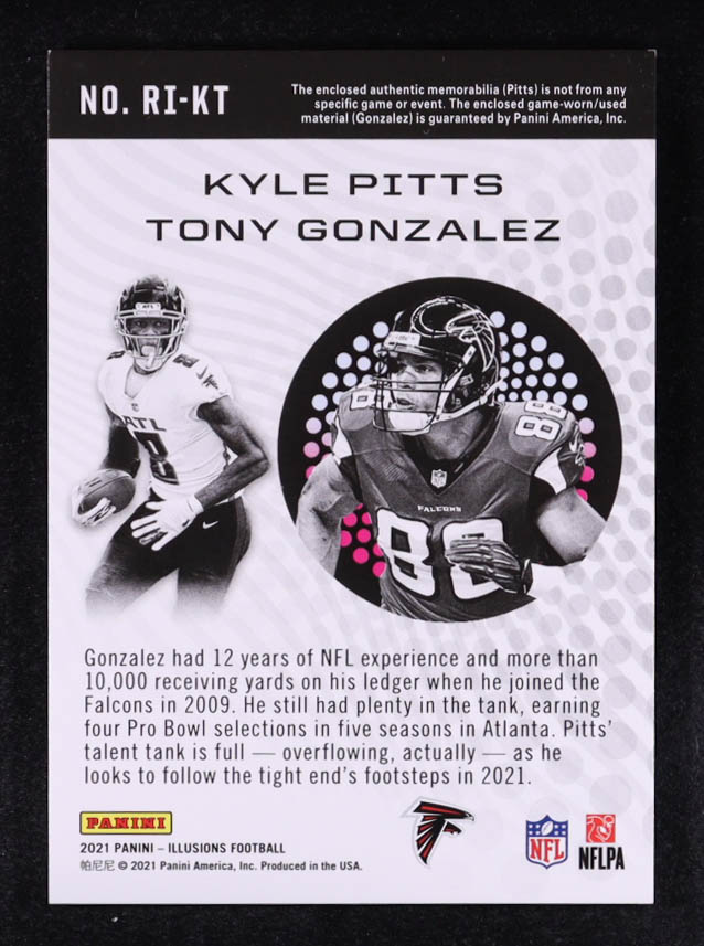 Kyle Pitts / Tony Gonzalez 2021 Panini Illusions Rookie Idols Dual Memorabilia Green #4 #4/10