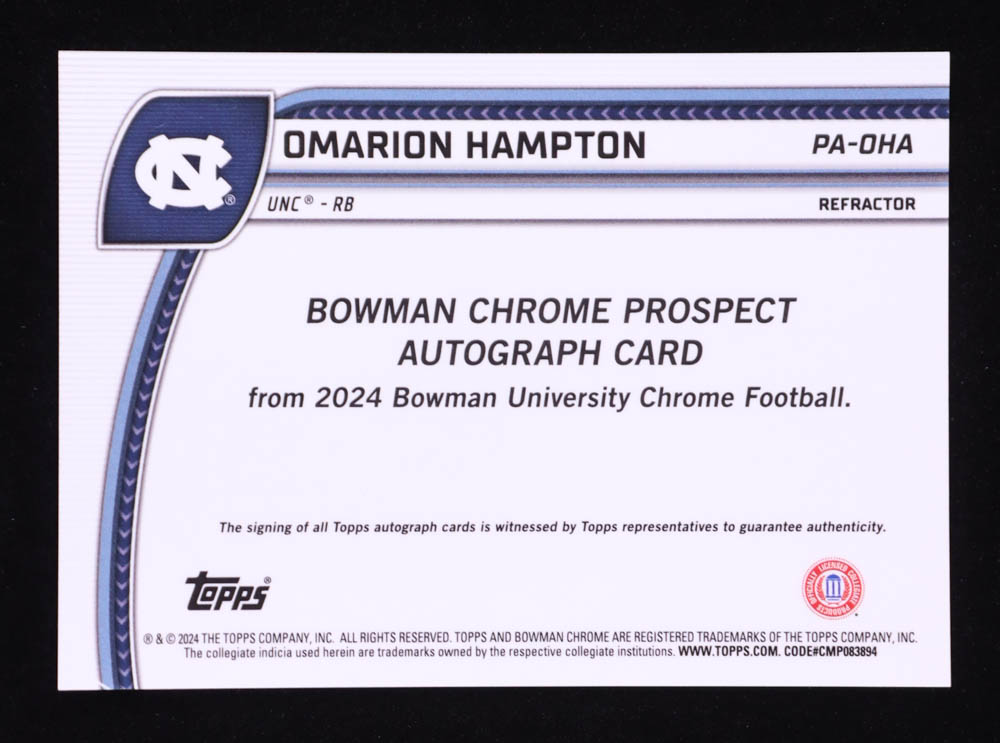 Omarion Hampton 2024 Bowman Chrome University Prospect Autographs Refractors #PAOHA #242/299 RC