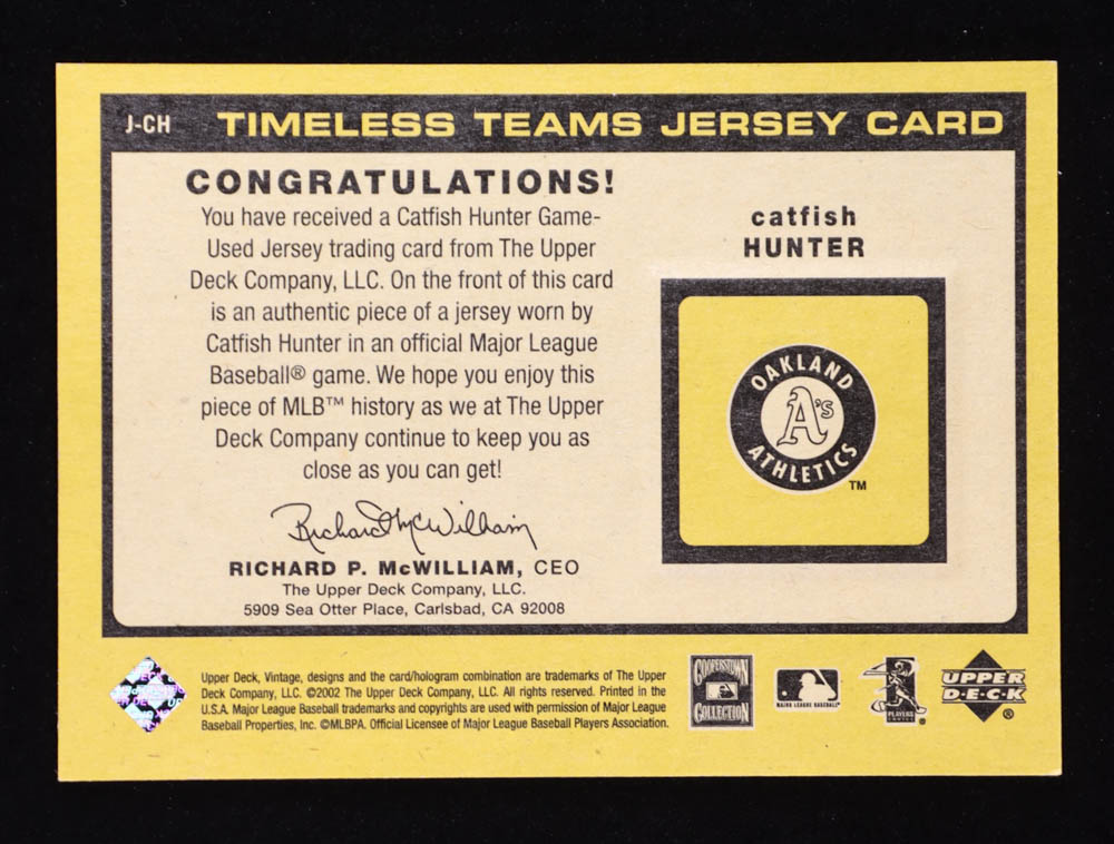 Catfish Hunter 2002 Upper Deck Vintage Timeless Teams Game Jersey #JCH Jersey
