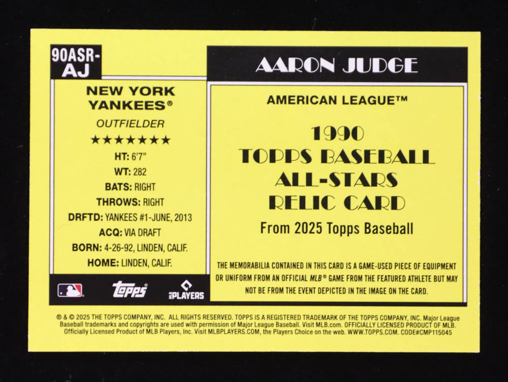 Aaron Judge 2025 Topps '90 Topps All Star Relics #90ASRAJ