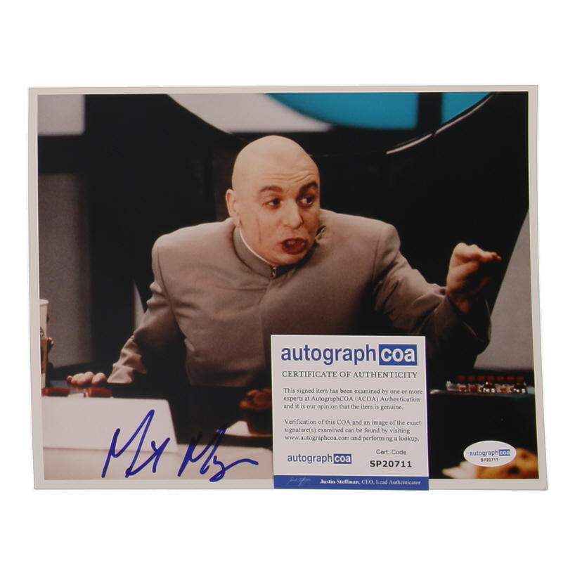 Photo measures 8" x 10" in size and has been hand-signed by Mike Myers.