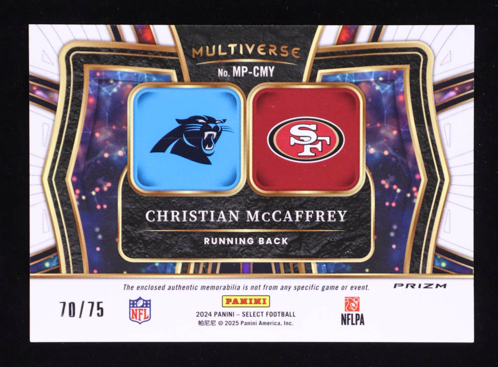 Christian McCaffrey 2024 Select Multiverse Dual Jerseys Prizm White #15 #70/75