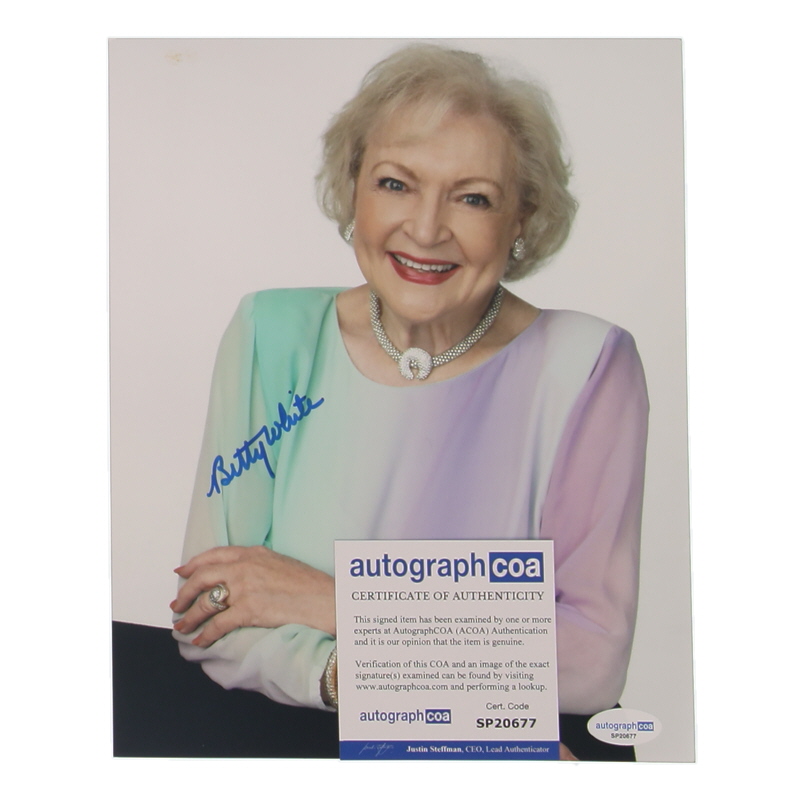 Photo measures 8" x 10" in size and has been hand-signed by Betty White (D. 2021).