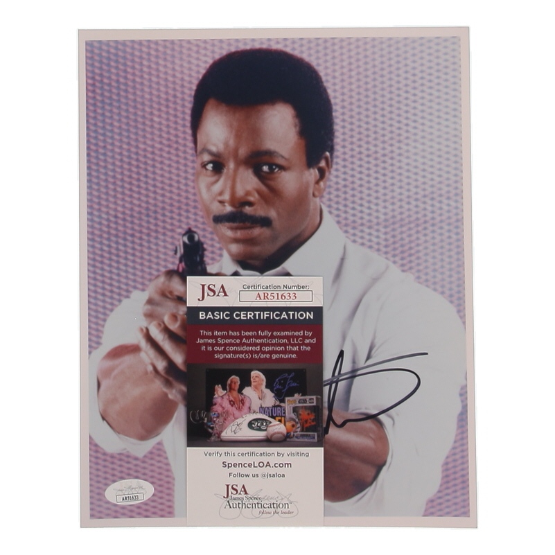 Photo measures 8" x 10" in size and has been hand-signed by Carl Weathers (D. 2024).