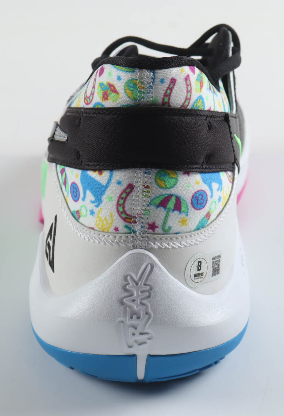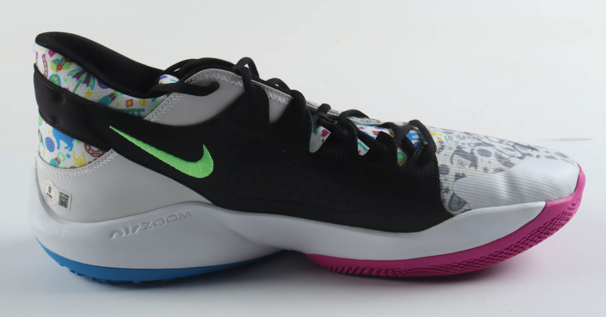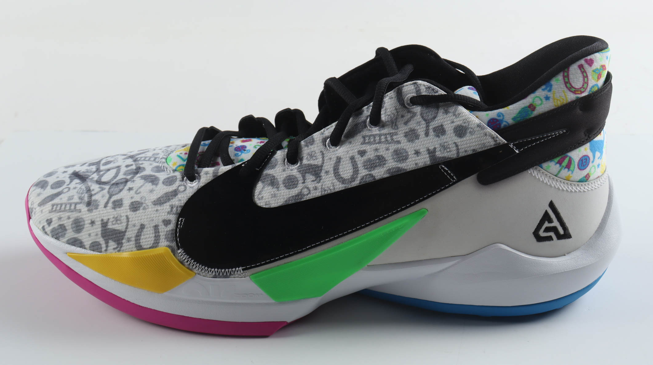 Nike Zoom Freak 2 "Alphabet" Basketball Shoe has been hand-signed by Giannis Antetokounmpo (Milwaukee Bucks).