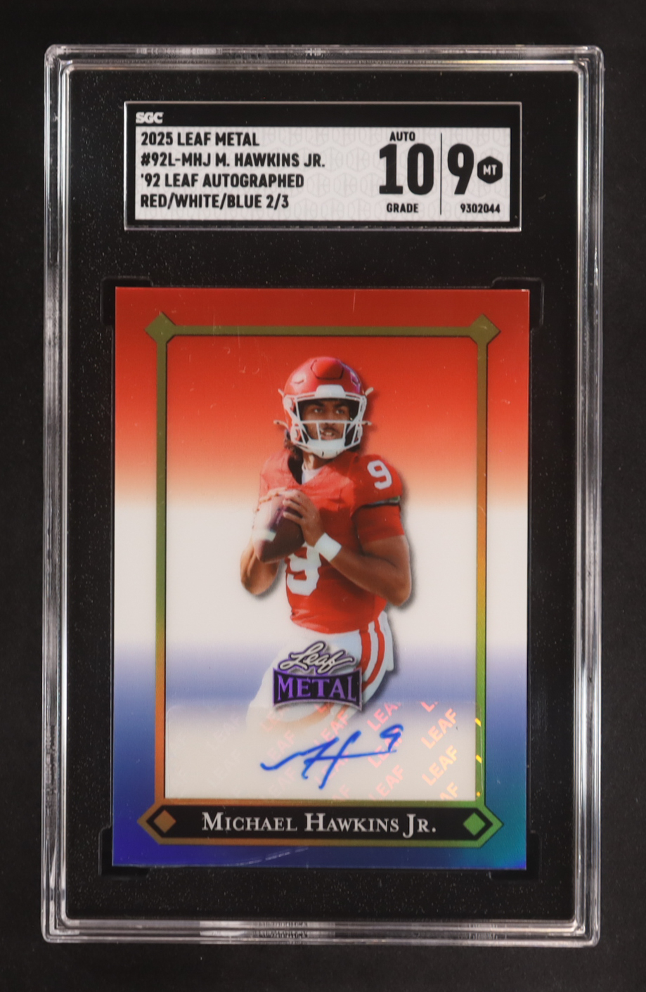 Michael Hawkins Jr. 2025 Leaf Metal '92 Leaf Red/White/Blue Auto #92L-MHJ RC #2/3 (SGC 9 | Autograph Graded SGC 10)