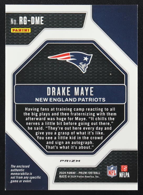 Drake Maye 2024 Panini Prizm Rookie Gear Neon Green Pulsar #6 RC