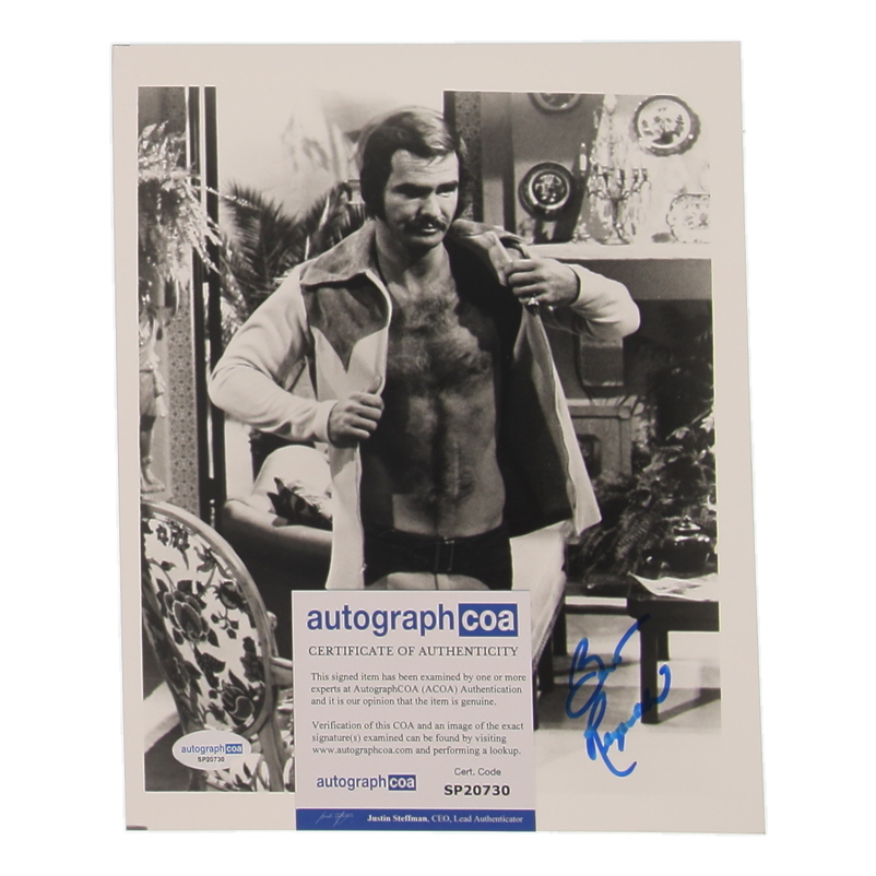 Photo measures 8" x 10" in size and has been hand-signed by Burt Reynolds (D. 2018).