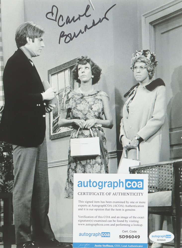 Photo measures 8" x 10" in size and has been hand-signed by Carol Burnett.
