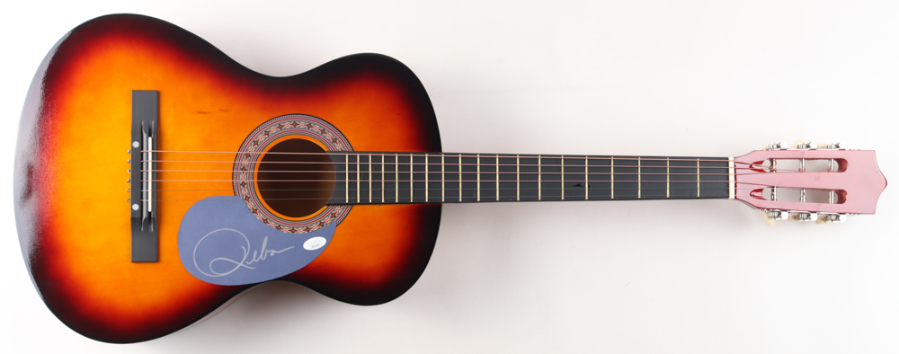 Acoustic guitar measures approximately 38" in length and has been hand-signed by Reba McEntire (HOF) on a cut that has been repurposed as the pickguard.
