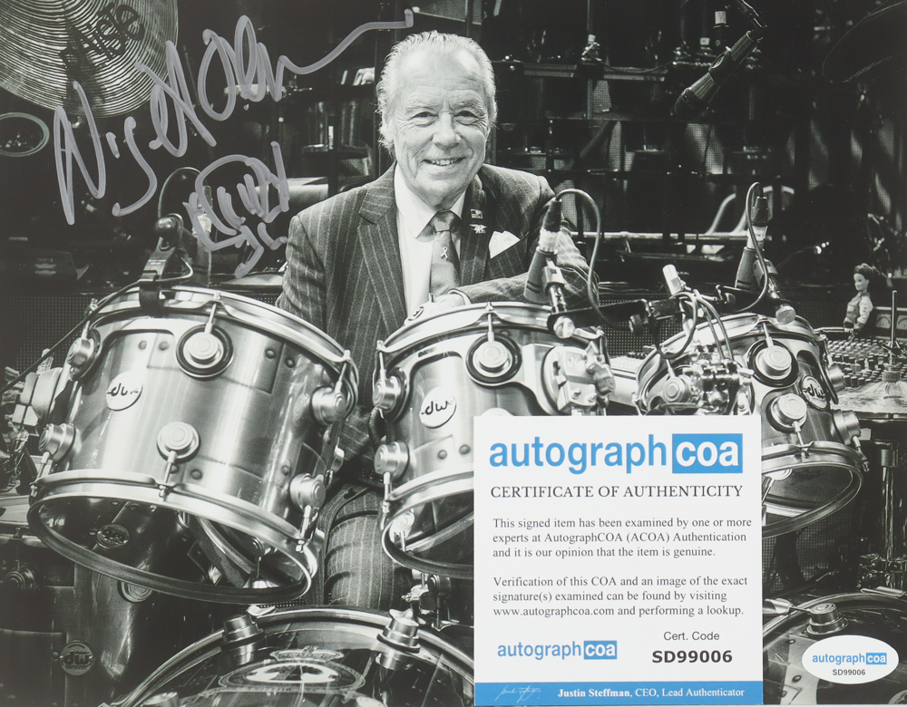 Photo measures 8" x 10" in size and has been hand-signed and sketched by Nigel Olsson.