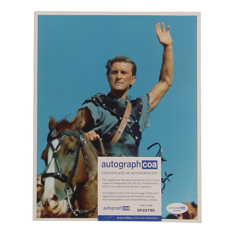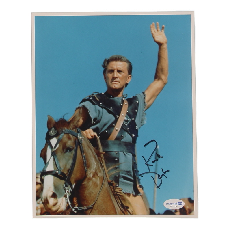 Photo measures 8" x 10" in size and has been hand-signed by Kirk Douglas (D. 2020).