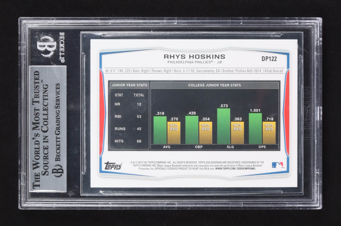 Rhys Hoskins Signed 2014 Bowman Draft #DP-122 RC (BGS)