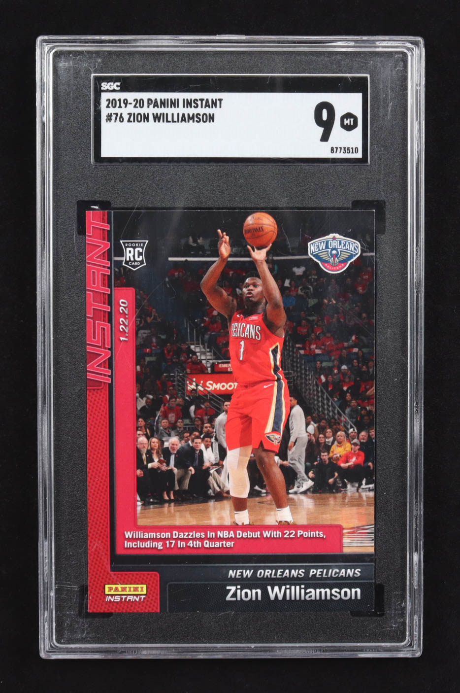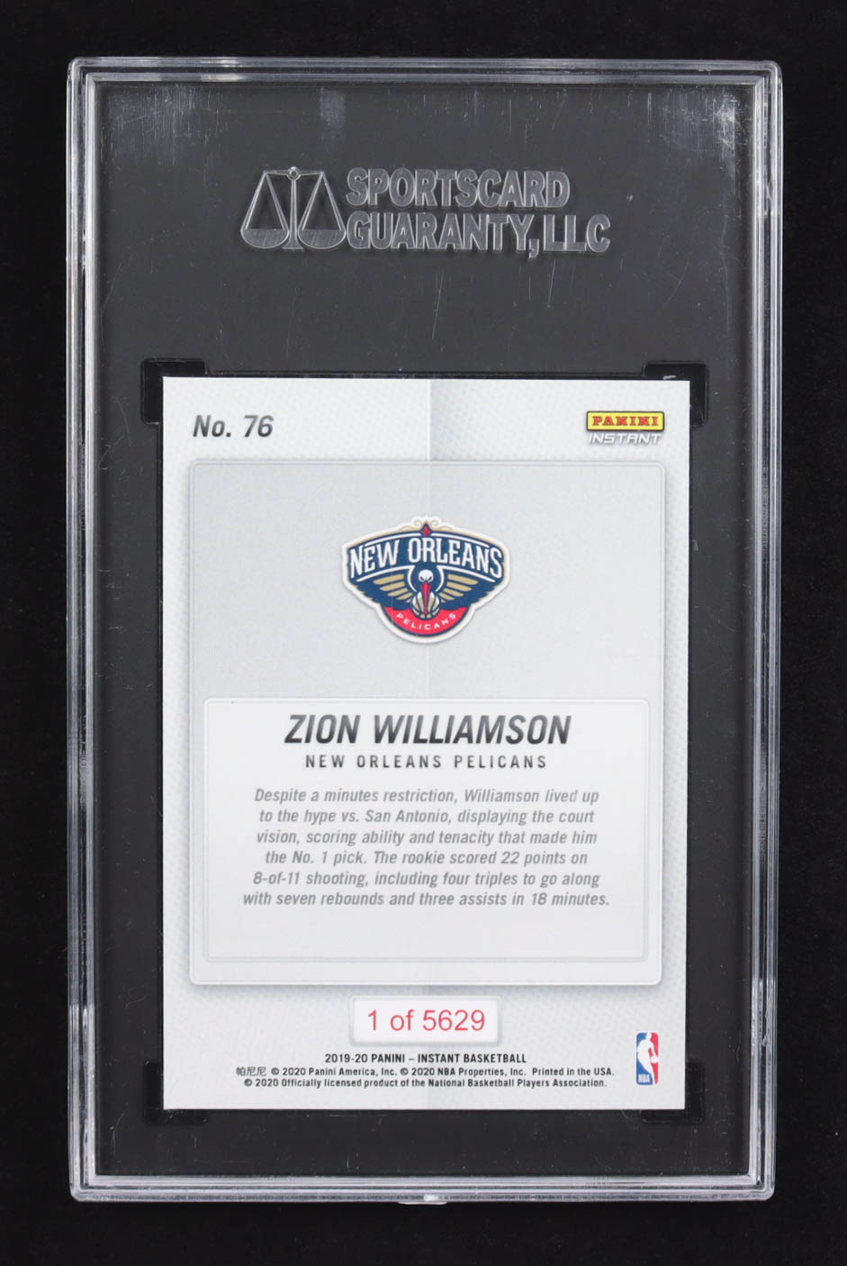 Zion Williamson 2019-20 Panini Instant Impact #76 RC #1/5629 (SGC 9)