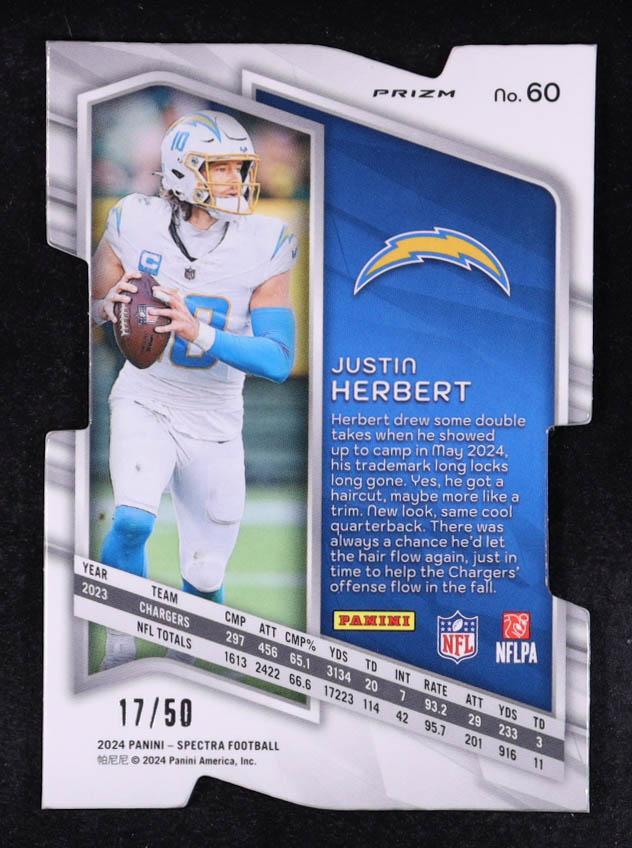 Justin Herbert 2024 Panini Spectra Neon Blue Die Cut #60 #17/50