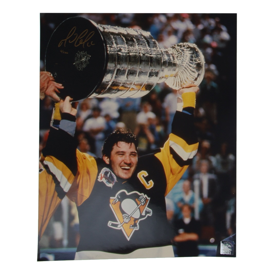 Photo measures 16" x 20" in size. Hand-signed by Mario Lemieux (Pittsburgh Penguins, HOF). Limited edition hand-numbered #2/266.