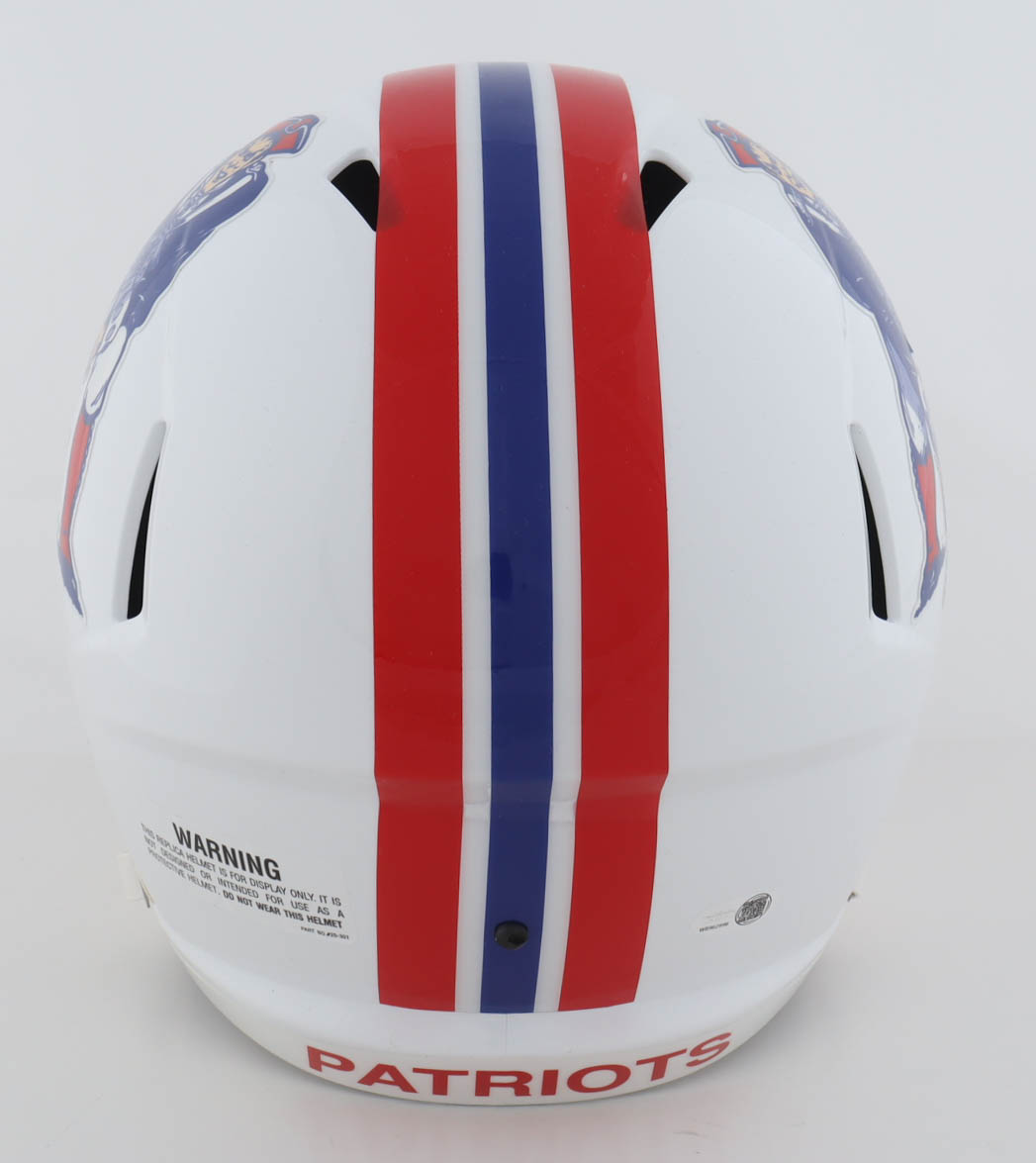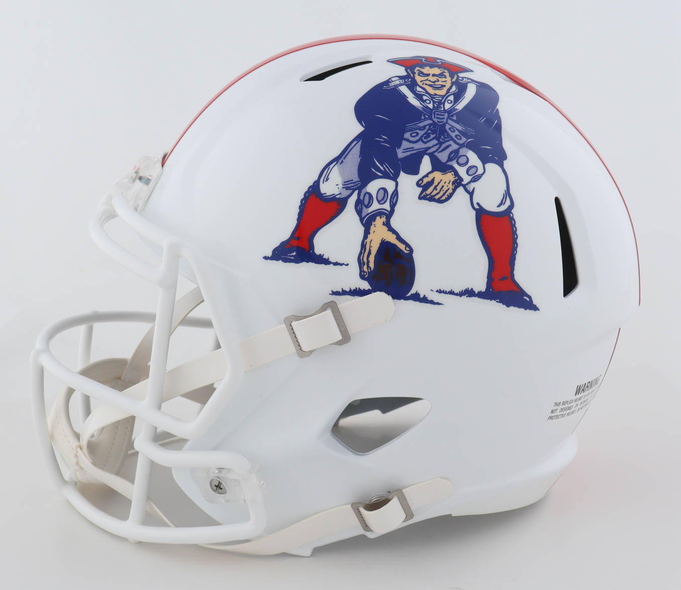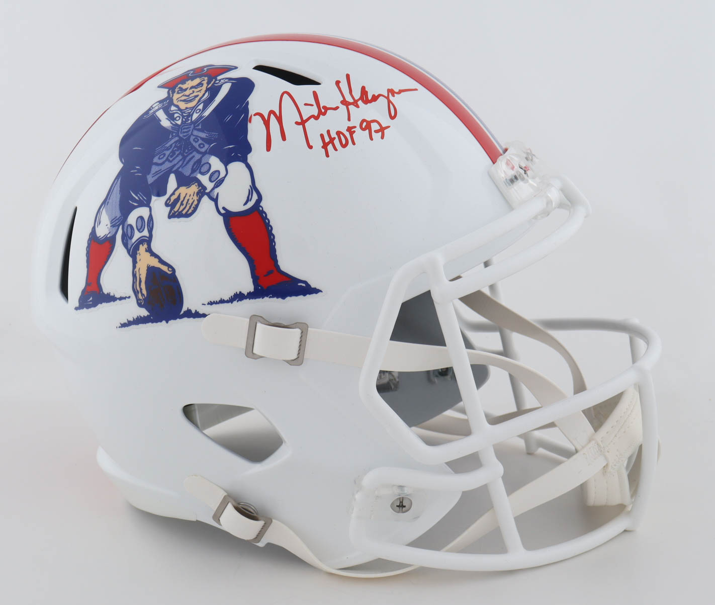 Riddell New England Patriots Full-Size Throwback Speed Replica helmet. Hand-signed and inscribed by Mike Haynes (HOF).