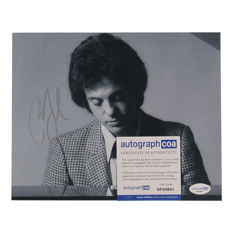 Photo measures 8" x 10" in size and has been hand-signed by Billy Joel.