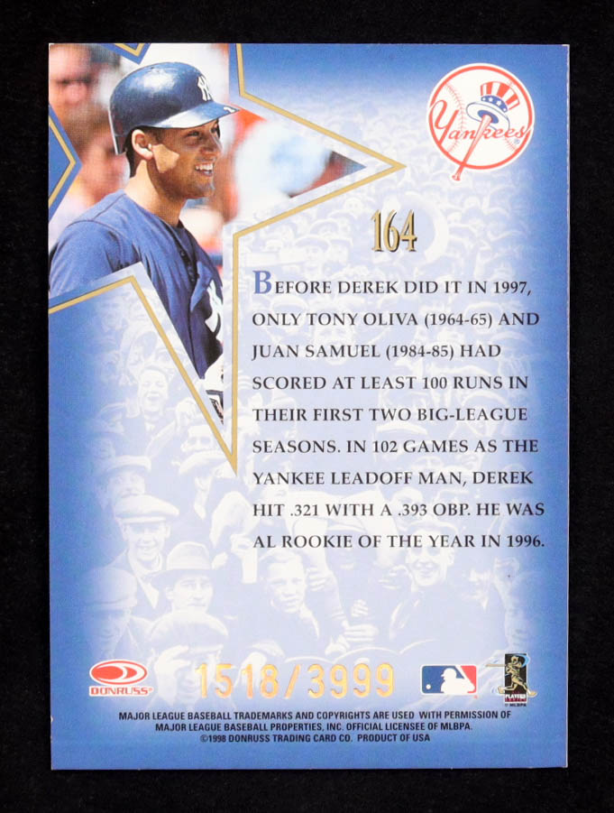 Derek Jeter 1998 Donruss Gold Leaf Star Fractal Foundation Leaf 50th Anniversary #164 #1518/3999