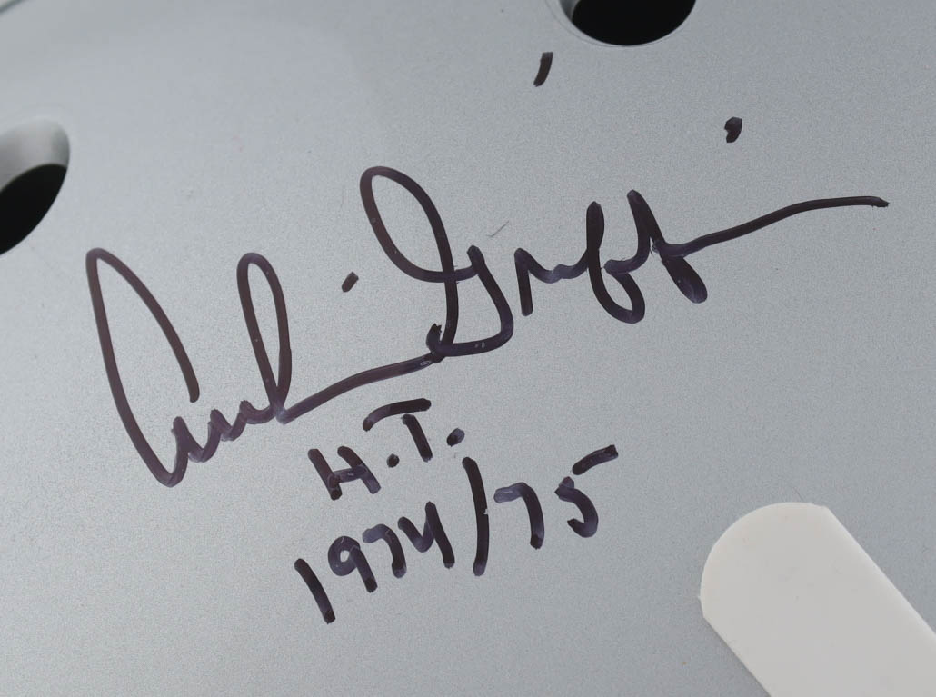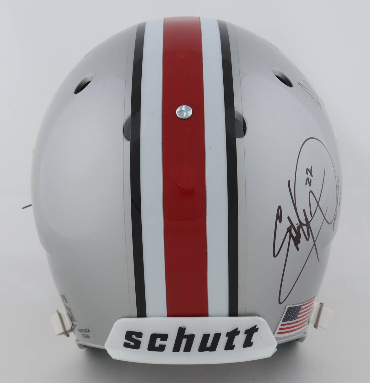 Riddell Ohio State Buckeyes full-size replica helmet. Hand-signed and inscribed by Archie Griffin, Troy Smith and Eddie George.