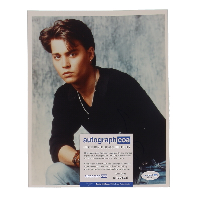 Photo measures 8" x 10" in size and has been hand-signed by Johnny Depp.