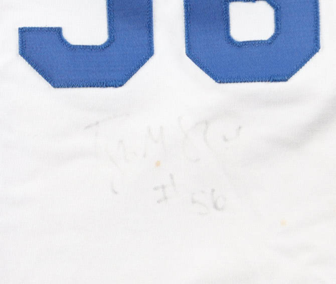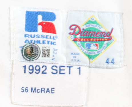Russell Athletic Diamond Collection jersey with everything sewn on, size 44. Hand-signed by Hal McRae. Please note, there is staining on the front and back of the jersey. See photos regarding the condition of the item.