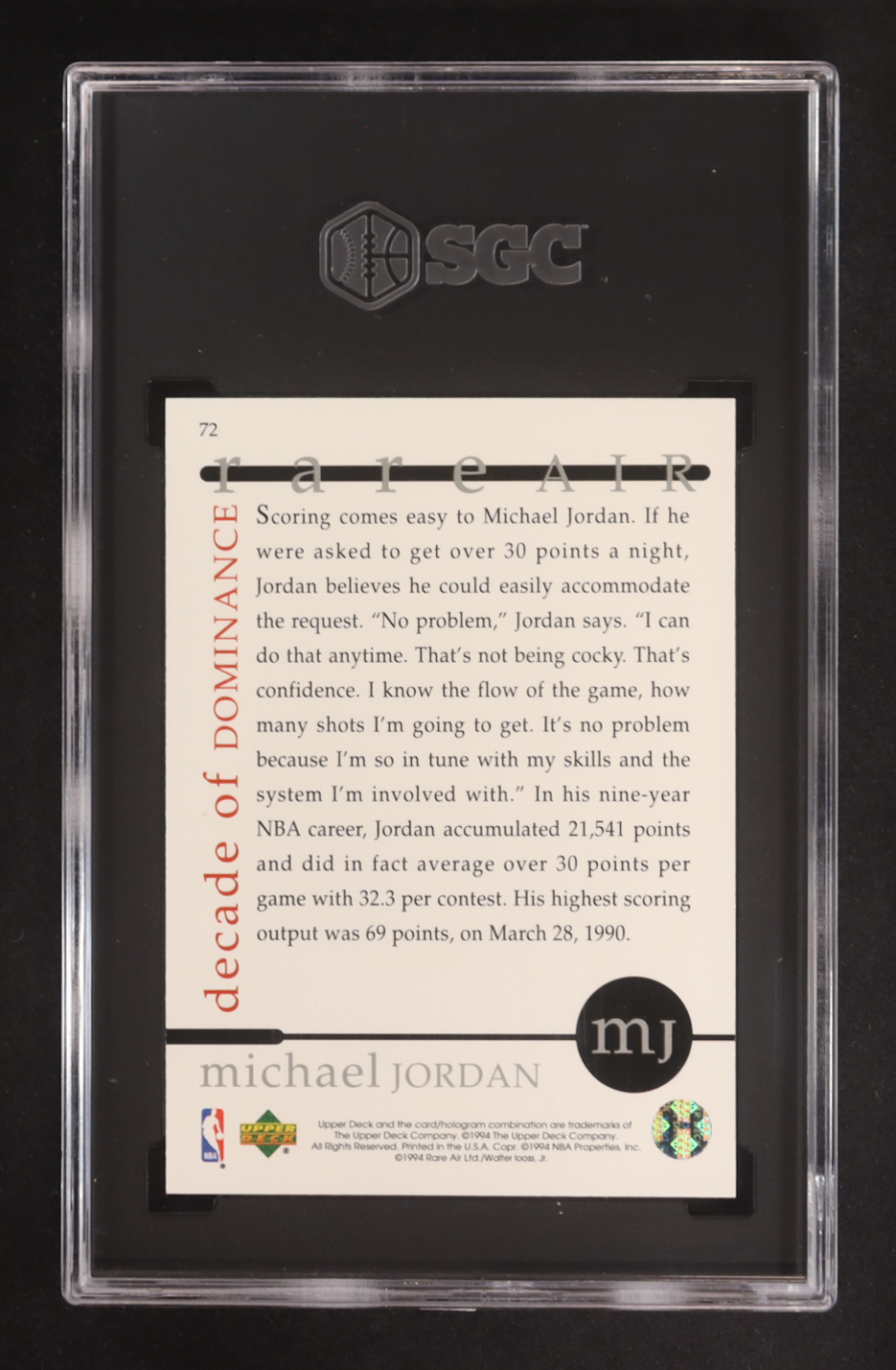 Michael Jordan 1994 Upper Deck Jordan Rare Air #72 (SGC 9.5)