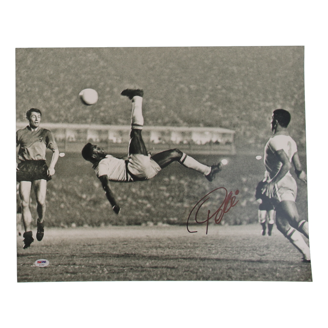 Photo measures 16" x 20" in size and has been hand-signed by Pele (D. 2022, HOF).