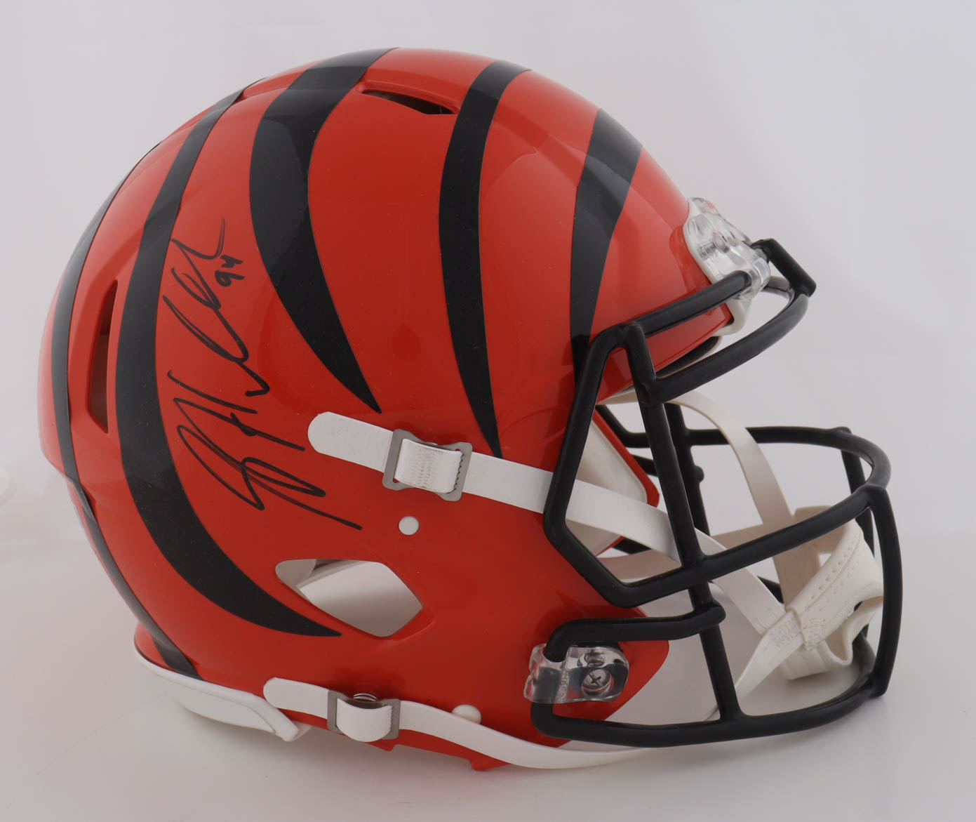 Riddell Cincinnati Bengals full-size authentic on-field speed helmet. Hand-signed by Sam Hubbard.