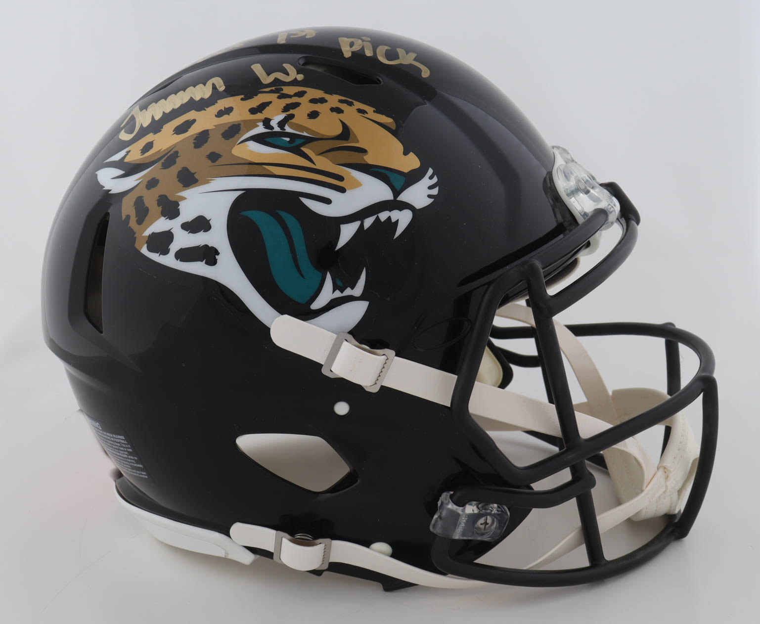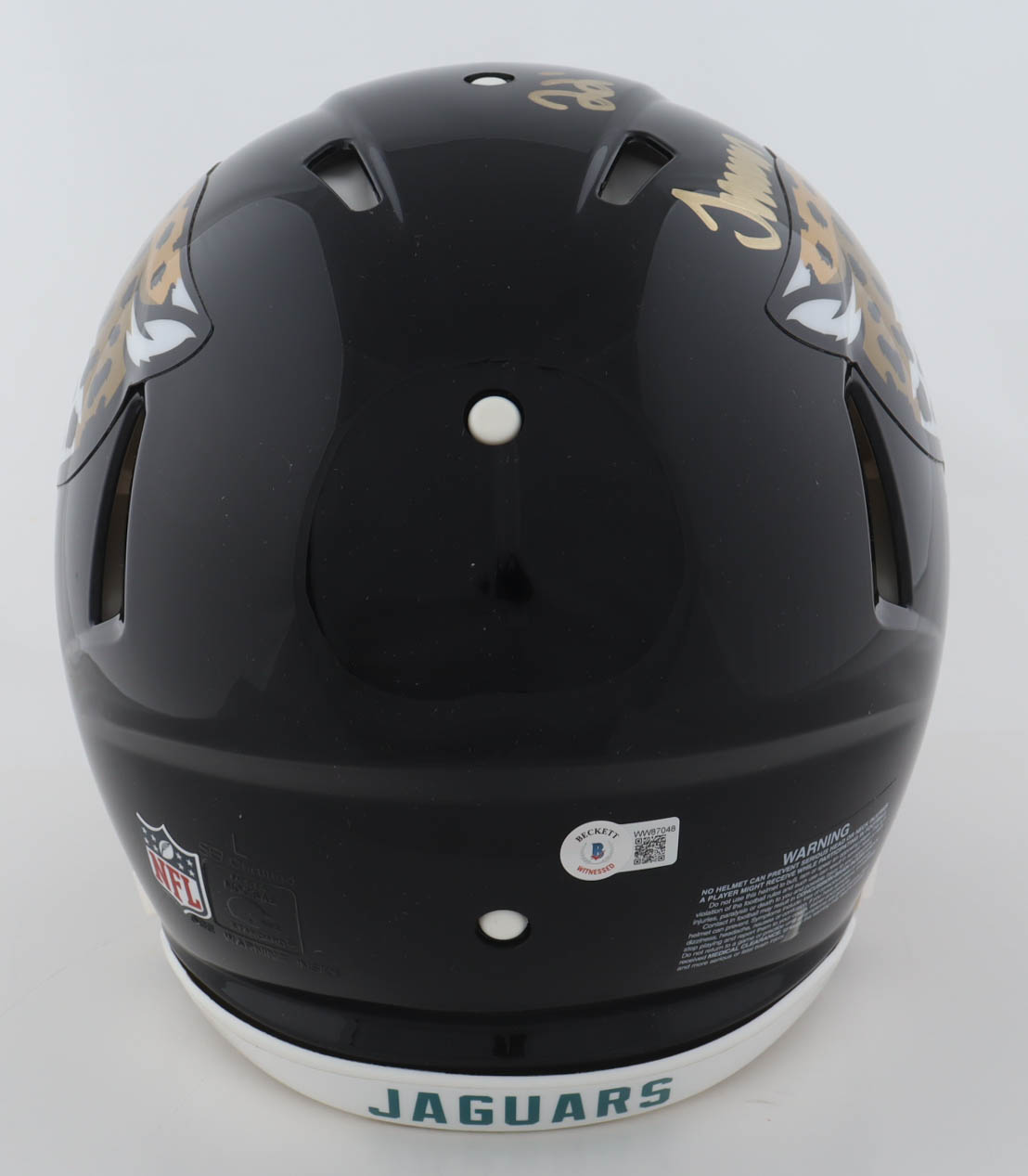 Riddell Jacksonville Jaguars Full-Size Authentic On-Field Speed Helmet has been hand-signed and inscribed by Travon Walker.
