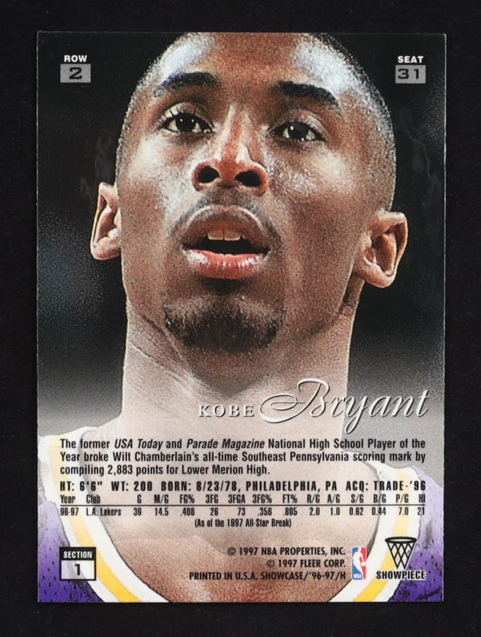 Kobe Bryant 1996-97 Flair Showcase Row 2 #31 RC