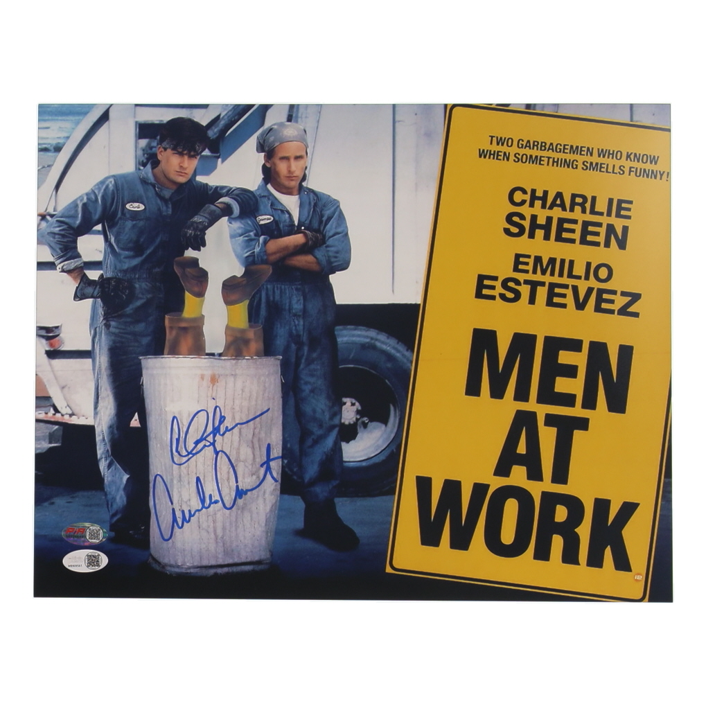 Charlie Sheen & Emilio Estevez Signed "Men At Work" 11x14 Poster (JSA)